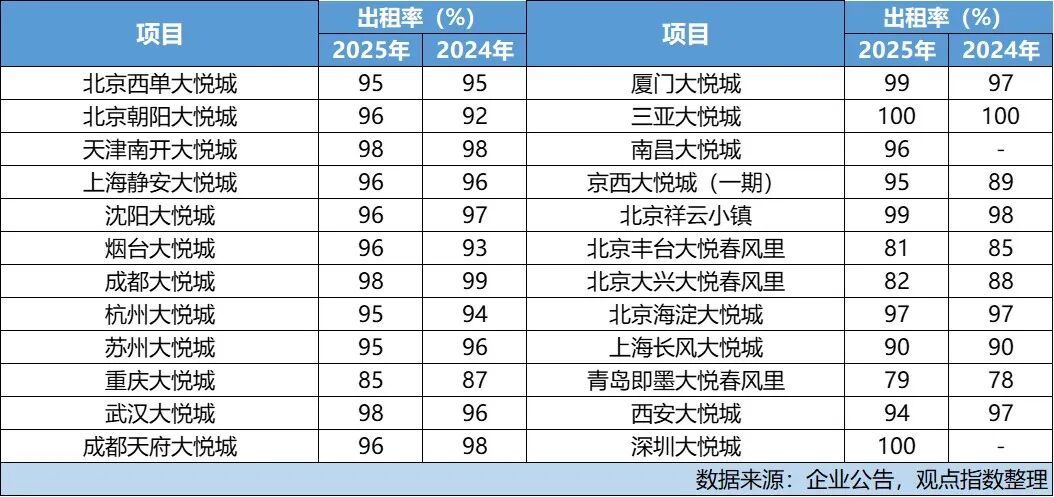 2025年,大悦城迎来南昌大悦城、深圳大悦城开业。其中,南昌大悦城开业于5月,项目总投资超30亿元、商业体量约13万平方米。项目引入超220家品牌,其中区域首店141家,占比超60%,还包含近40家城市及以上级别首店。截至期末,项目出租率96%。